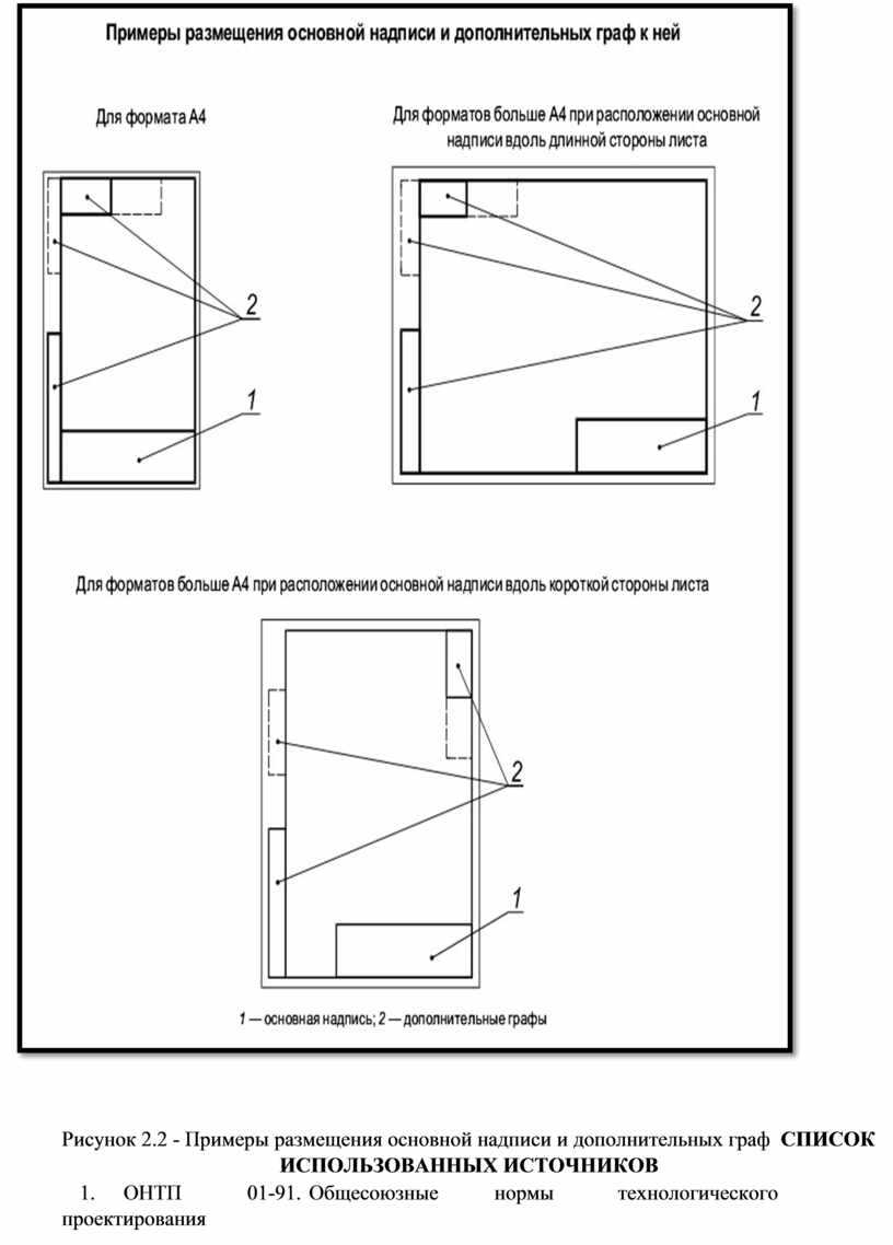 Рисунок 2.2 - Примеры размещения основной надписи и дополнительных граф СПИСОК ИСПОЛЬЗОВАННЫХ ИСТОЧНИКОВ