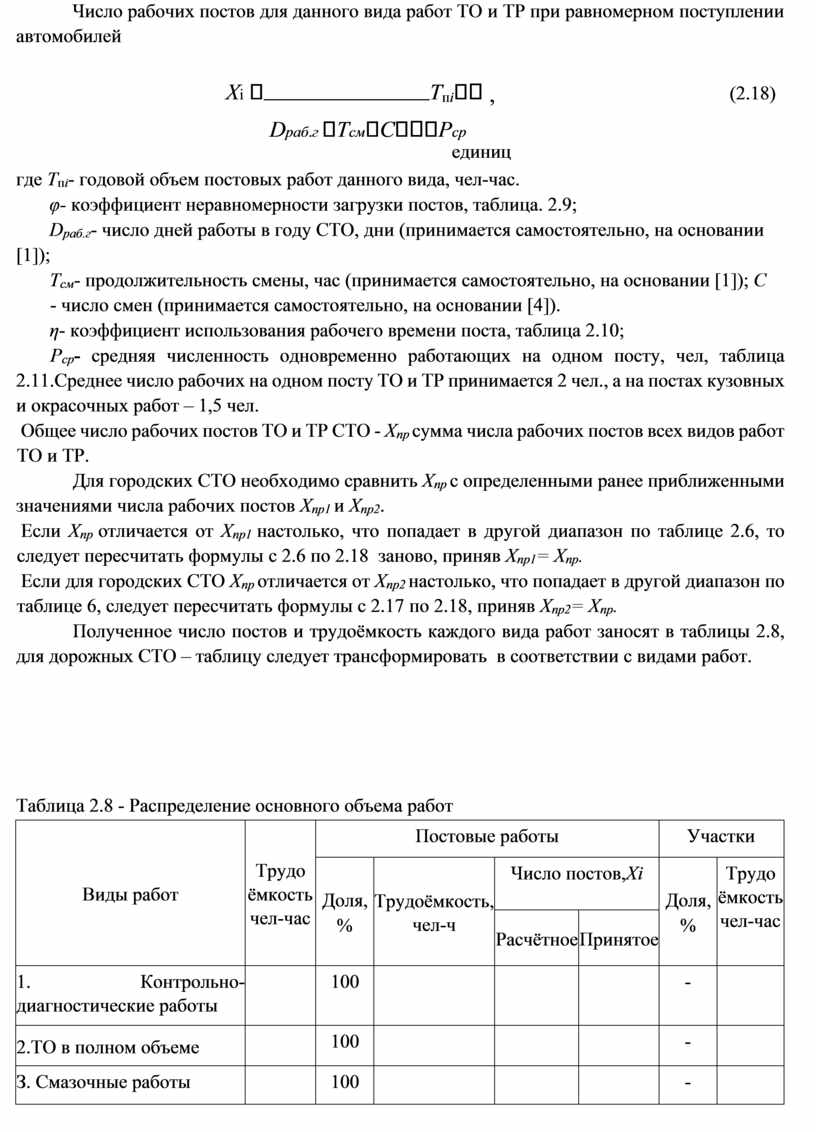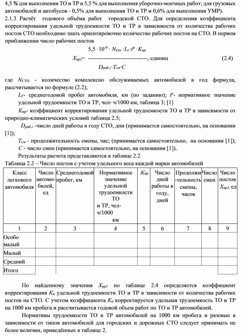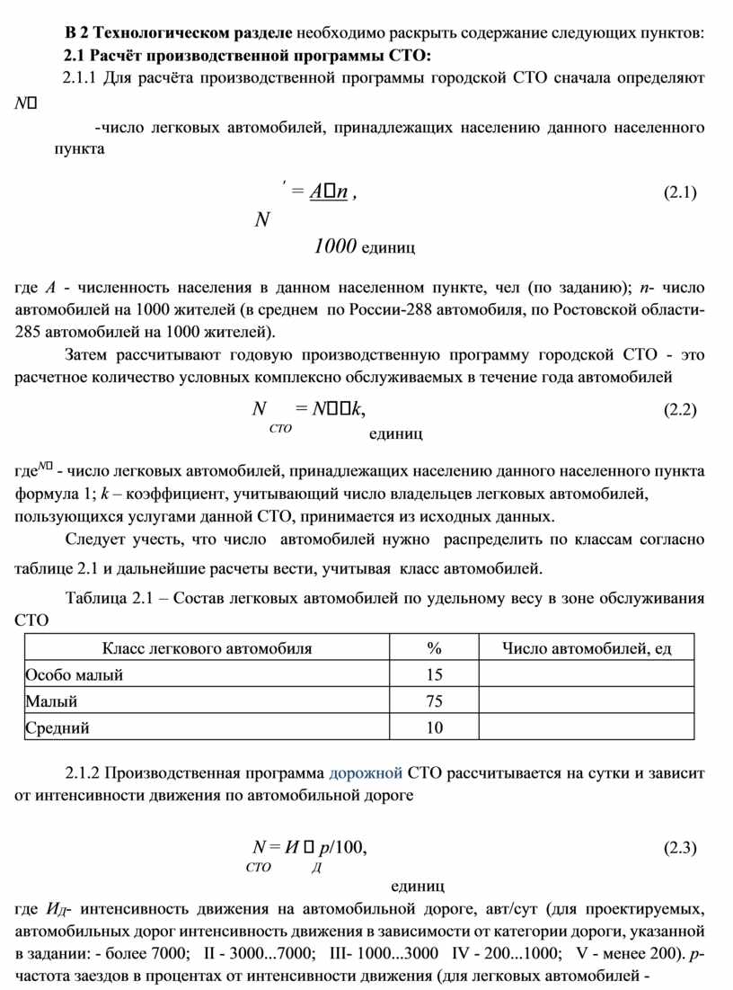 - Расчёт производственной программы СТО