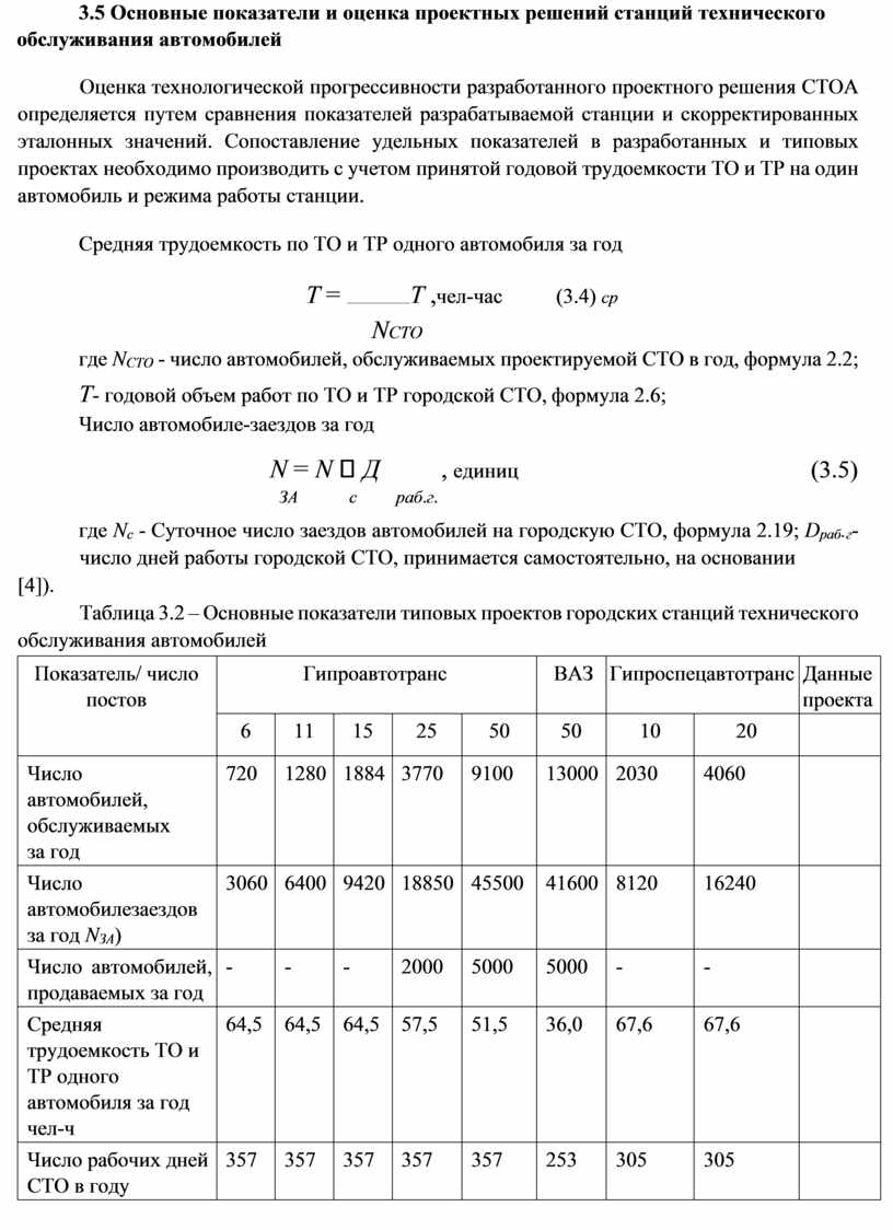-Основные показатели и оценка проектных решений СТО