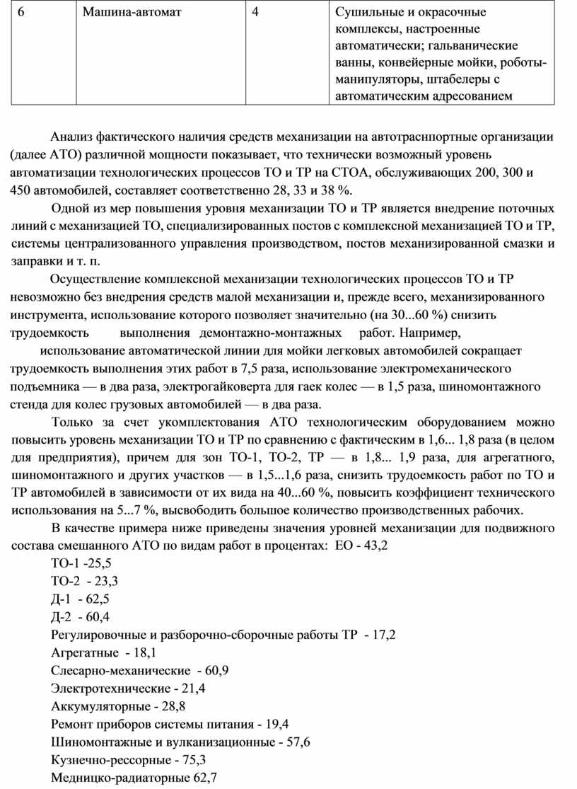 - совершенствование технологических процессов при техническом обслуживании и ремонте автомобилей;