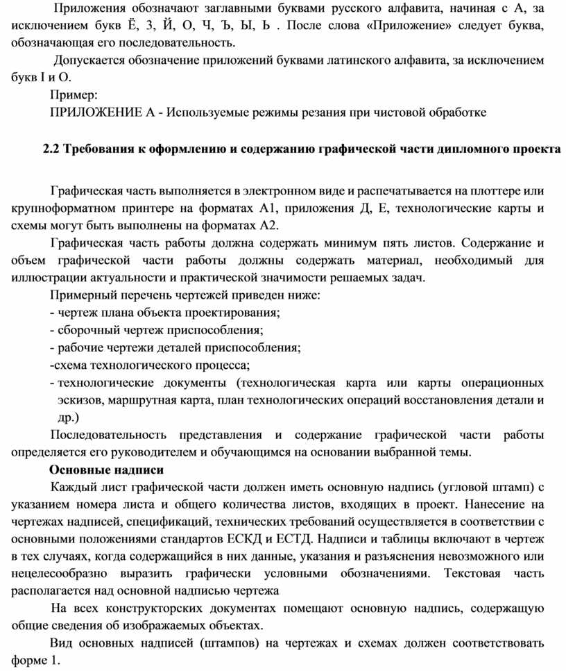 Каждый лист графической части должен иметь основную надпись (угловой штамп) с указанием номера листа и общего количества листов, входящих в проект. Нанесение на чертежах надписей, спецификаций, технических требований осуществляется в соответствии с основными положениями стандартов ЕСКД и ЕСТД. Надписи и таблицы включают в чертеж в тех случаях, когда содержащийся в них данные, указания и разъяснения невозможного или нецелесообразно выразить графически условными обозначениями. Текстовая часть располагается над основной надписью чертежа