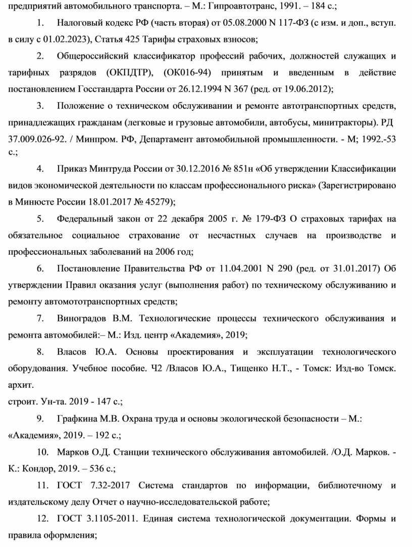 8. Виноградов В.М. Технологические процессы технического обслуживания и ремонта автомобилей:– М.: Изд. центр «Академия», 2019;