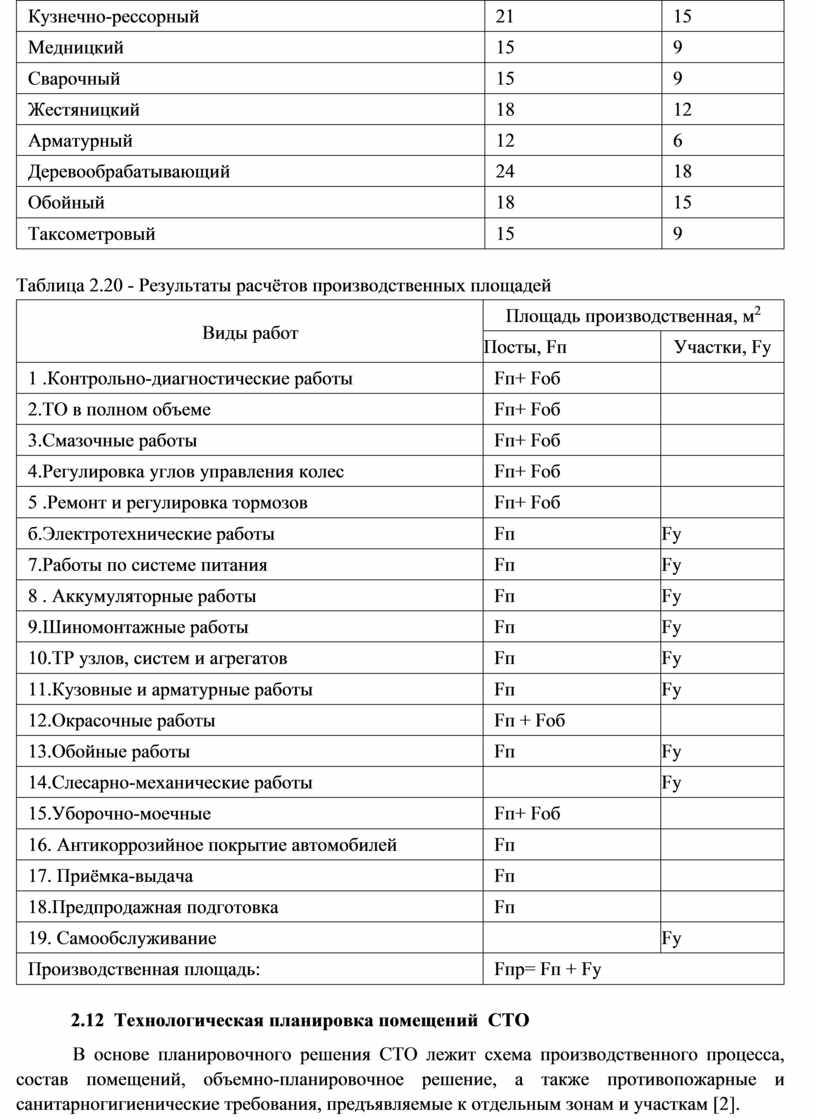 - оптимизацию планировочного решения производственного подразделения станции технического обслуживания.
