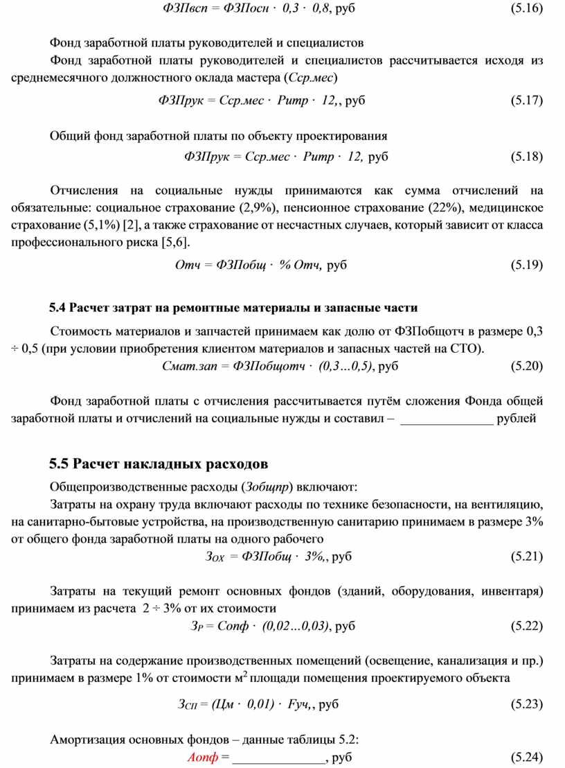 - Расчет накладных расходов