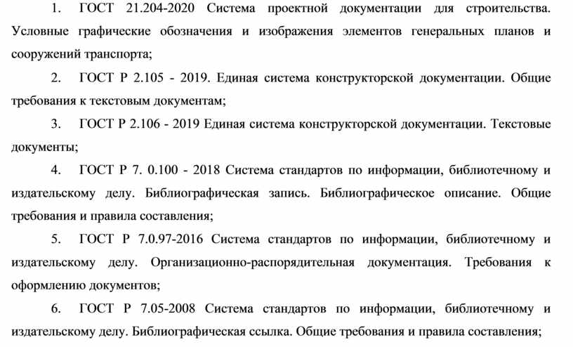 14. ГОСТ 21.204-2020 Система проектной документации для строительства. Условные графические обозначения и изображения элементов генеральных планов и сооружений транспорта;
