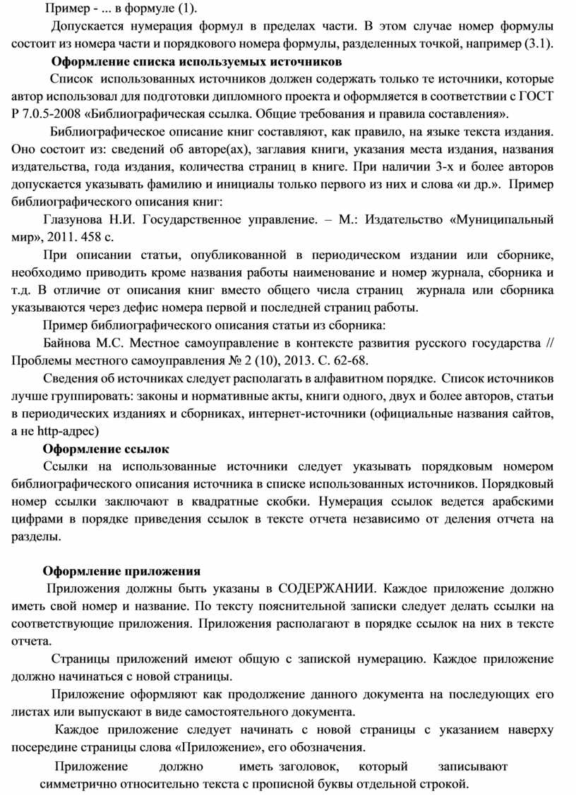 Список использованных источников должен содержать только те источники, которые автор использовал для подготовки дипломного проекта и оформляется в соответствии с ГОСТ Р 7.0.5-2008 «Библиографическая ссылка. Общие требования и правила составления».