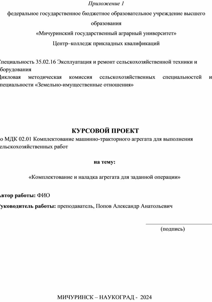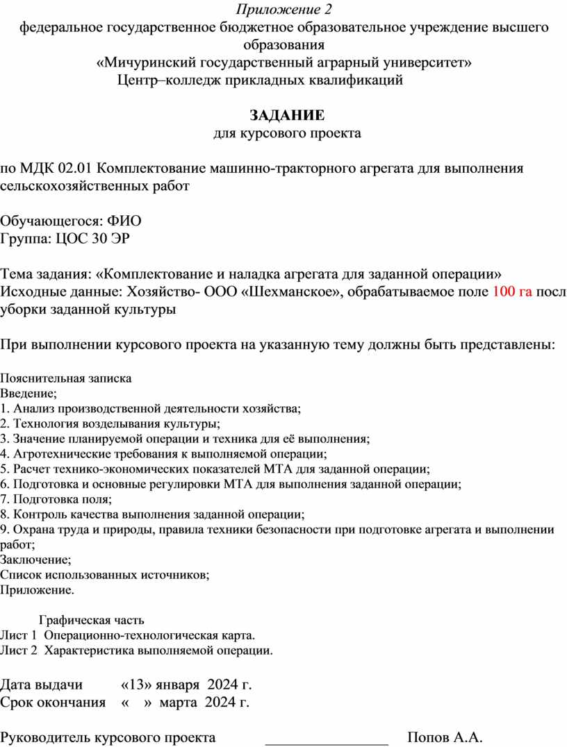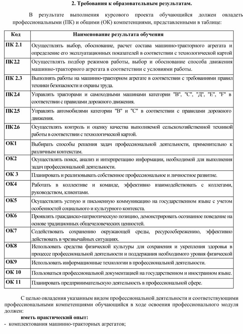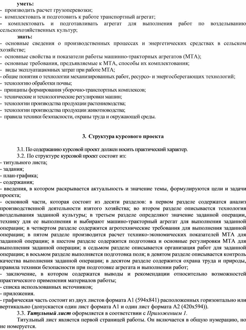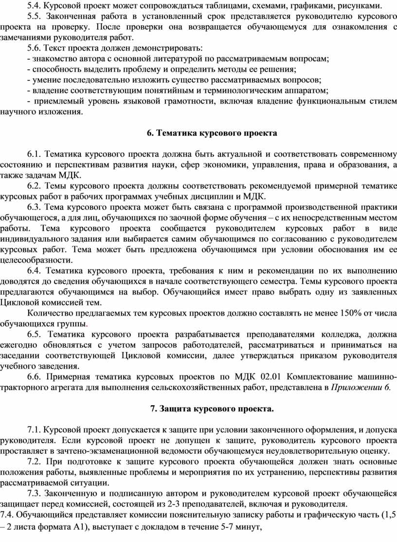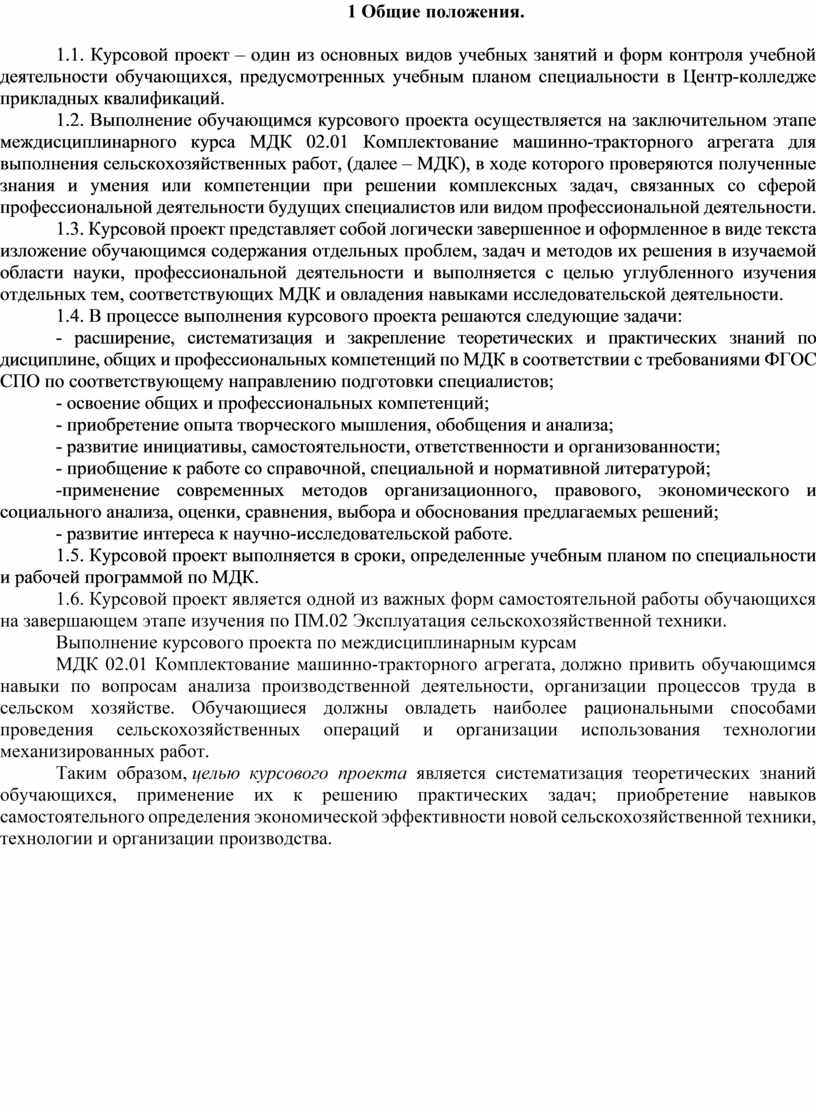 1.6. Курсовой проект является одной из важных форм самостоятельной работы обучающихся на завершающем этапе изучения по ПМ.02 Эксплуатация сельскохозяйственной техники.
