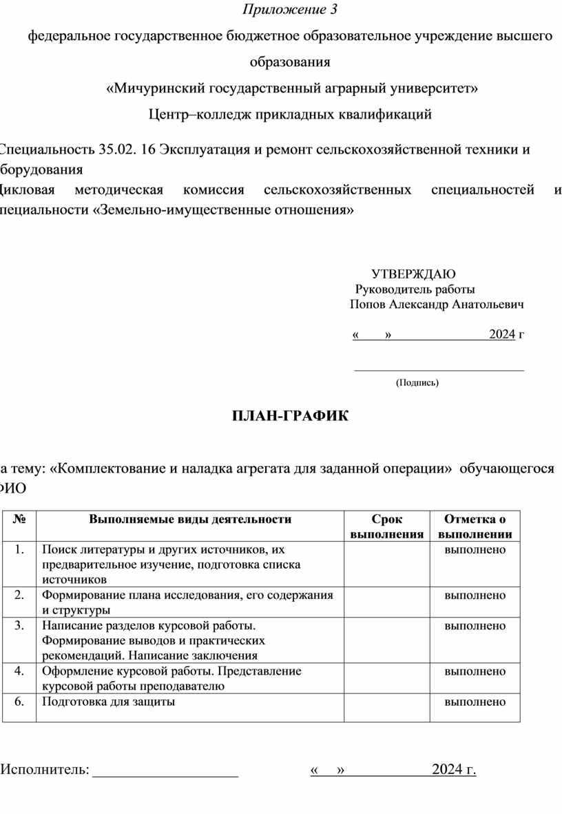 Рассмотрен: на заседании цикловой методической комиссии сельскохозяйственных специальностей и специальности «Земельно-имущественные отношения» протокол № _____ от «____» ______________ 2024 г. Председатель ЦМК ____________ ПоповА.В. |