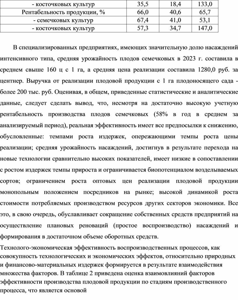 Таблица 10 – Урожайность некоторых сельхозкультур