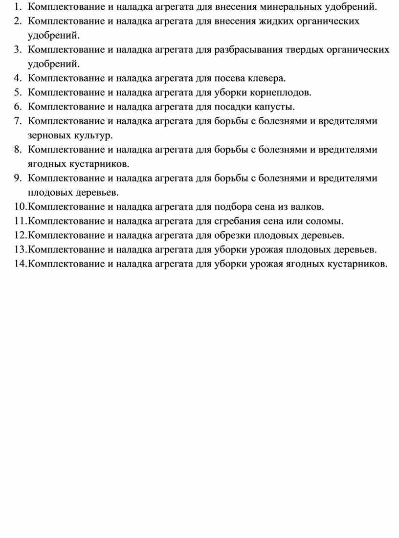 - комплектовать и подготавливать агрегат для выполнения работ по возделыванию сельскохозяйственных культур;