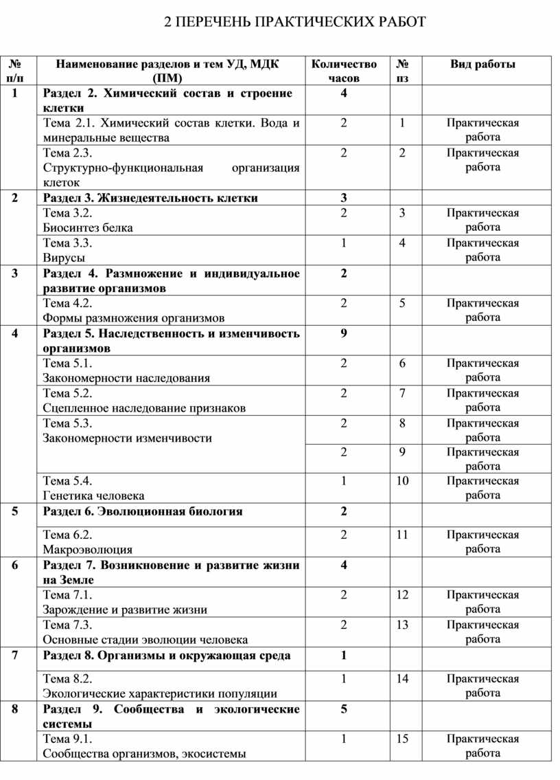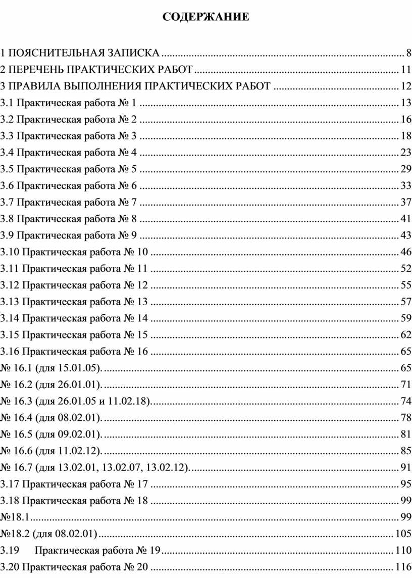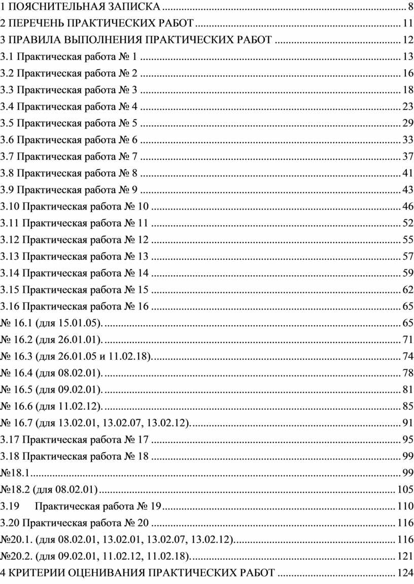 2 ПЕРЕЧЕНЬ ПРАКТИЧЕСКИХ РАБОТ