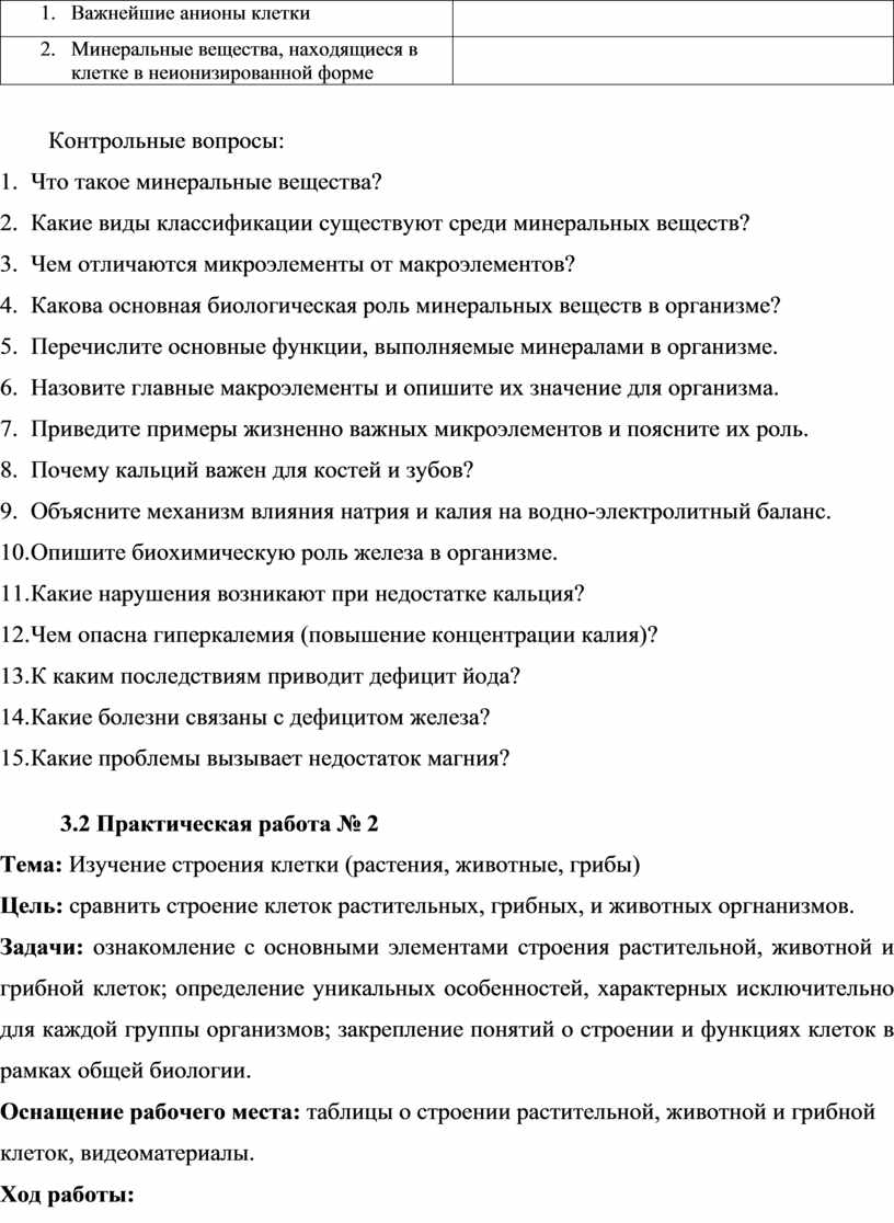 Тема 2.1. Химический состав клетки. Вода и минеральные вещества |