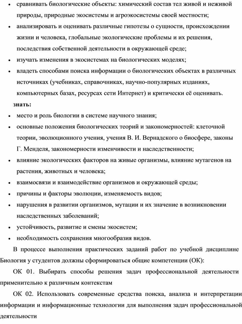 В процессе выполнения практических заданий работ по учебной дисциплине Биология у студентов должны сформироваться общие компетенции (ОК):