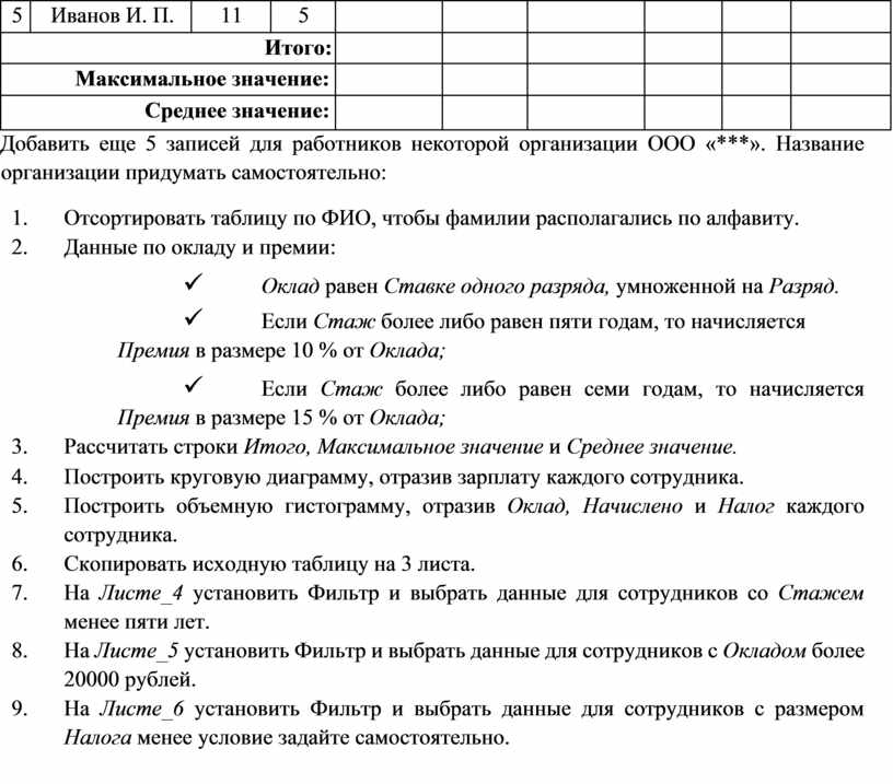 Задание 3. На листе Листе_3 с названием Зарплата, создать таблицу по образцу:
