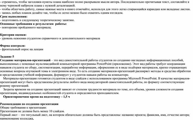 Перед выполнением студентами внеаудиторной самостоятельной работы преподаватель