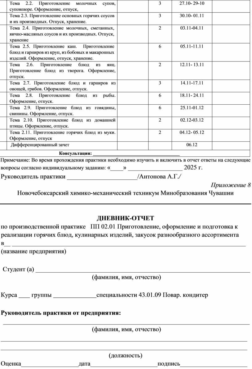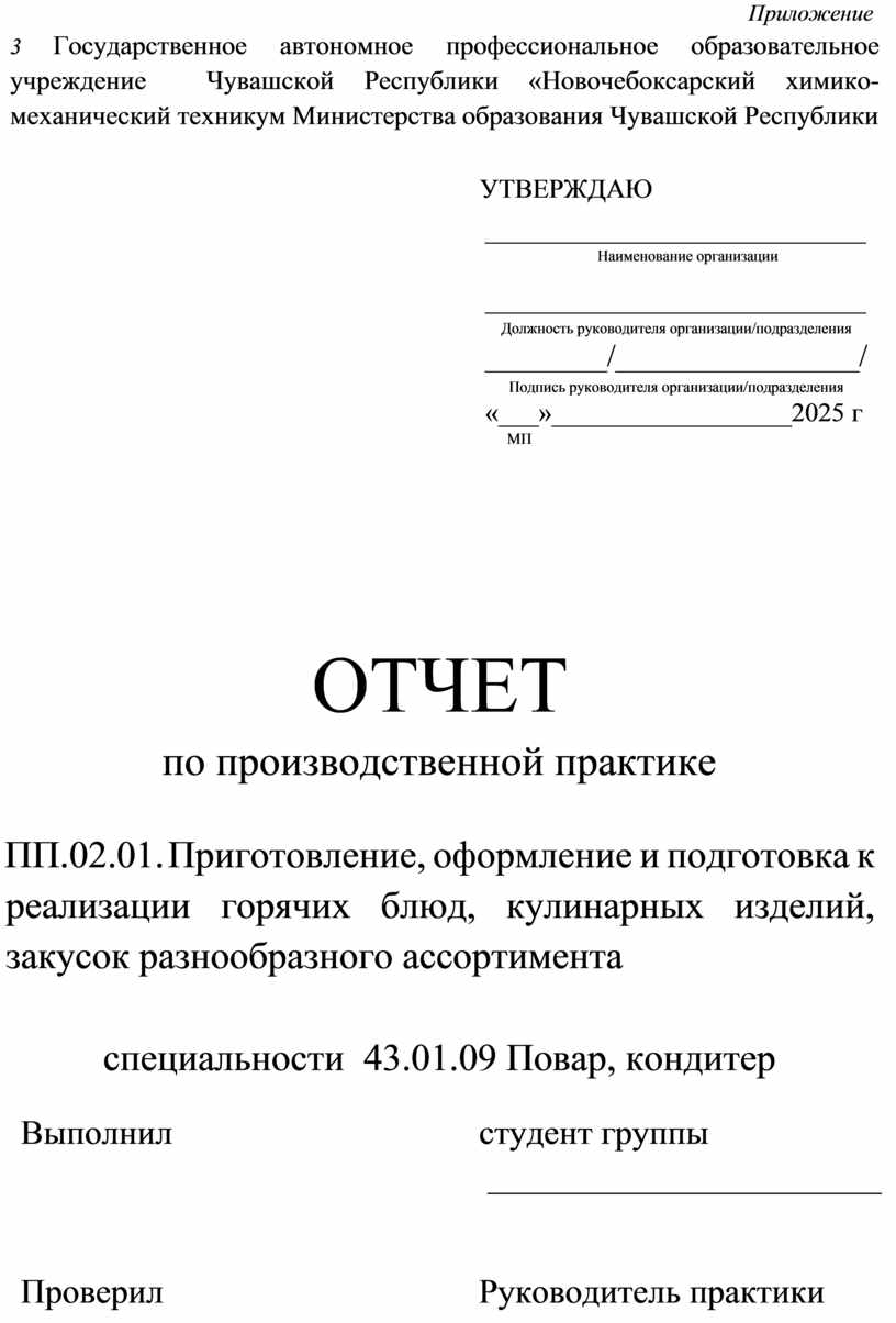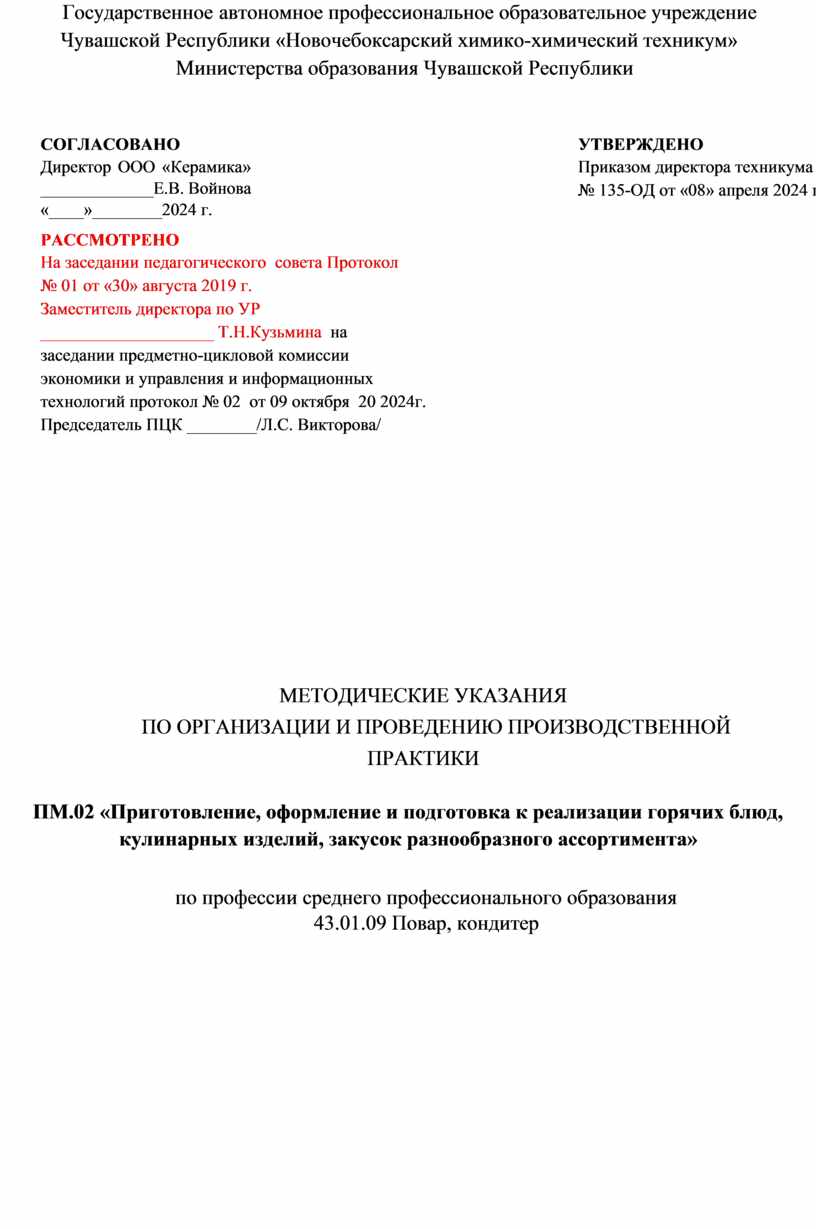 прохождения производственной практики ПП 02.01 Приготовление, оформление и подготовка к реализации горячих блюд, кулинарных изделий, закусок разнообразного ассортимента студентом Новочебоксарского химико-механического техникума Минобразования Чувашии_____________________________________________________________________