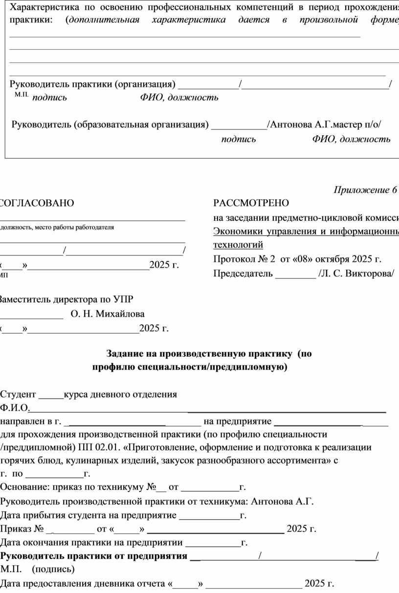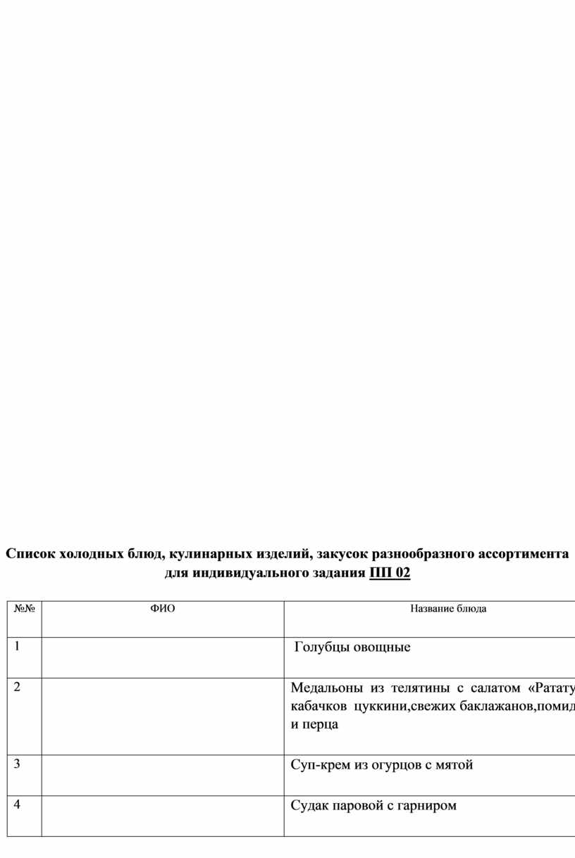 по производственной практике ПП 02.01 Приготовление, оформление и подготовка к реализации горячих блюд, кулинарных изделий, закусок разнообразного ассортимента в__ _________________________________________________________________________ (название предприятия)
