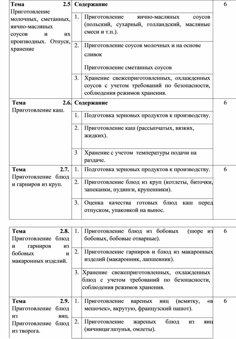 Тема 2.5. Приготовление каш. Приготовление блюд и гарниров из круп, из бобовых и макаронных изделий. Оформление, отпуск, хранение. |