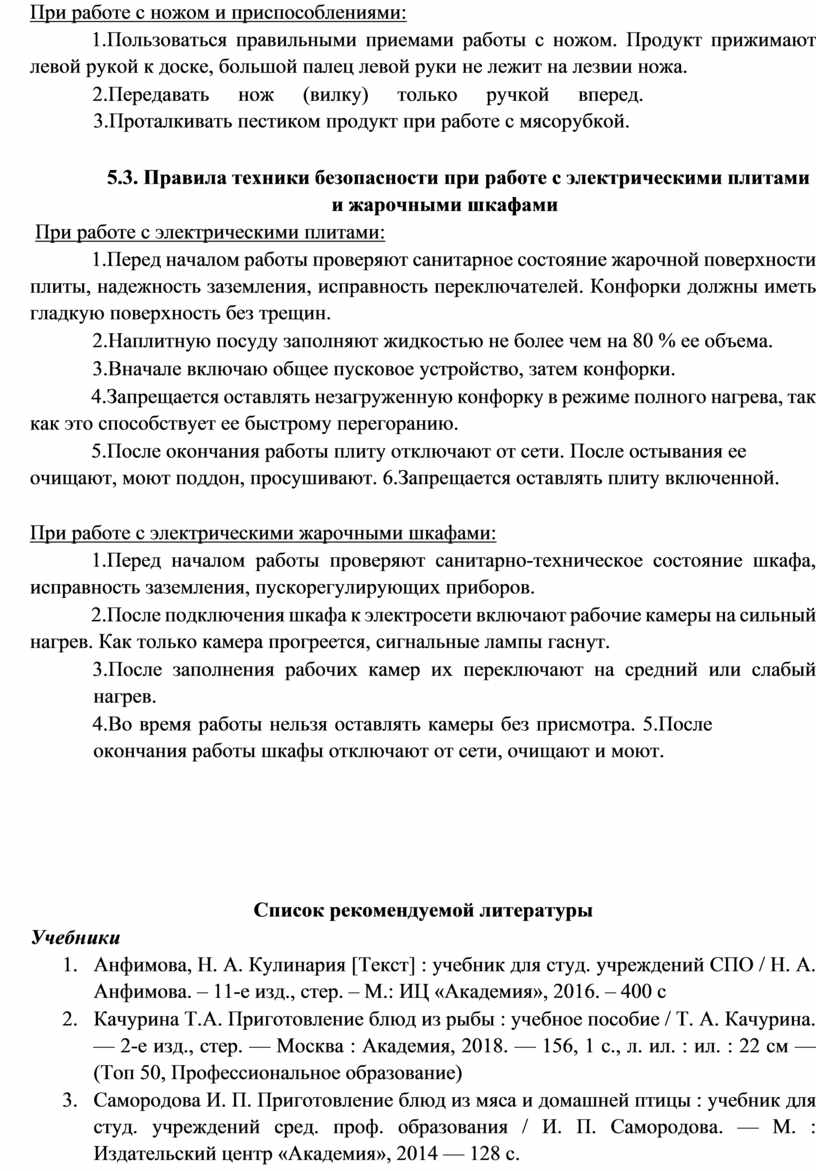 5.3 Правила техники безопасности при работе с электрическими плитами и жарочными шкафами