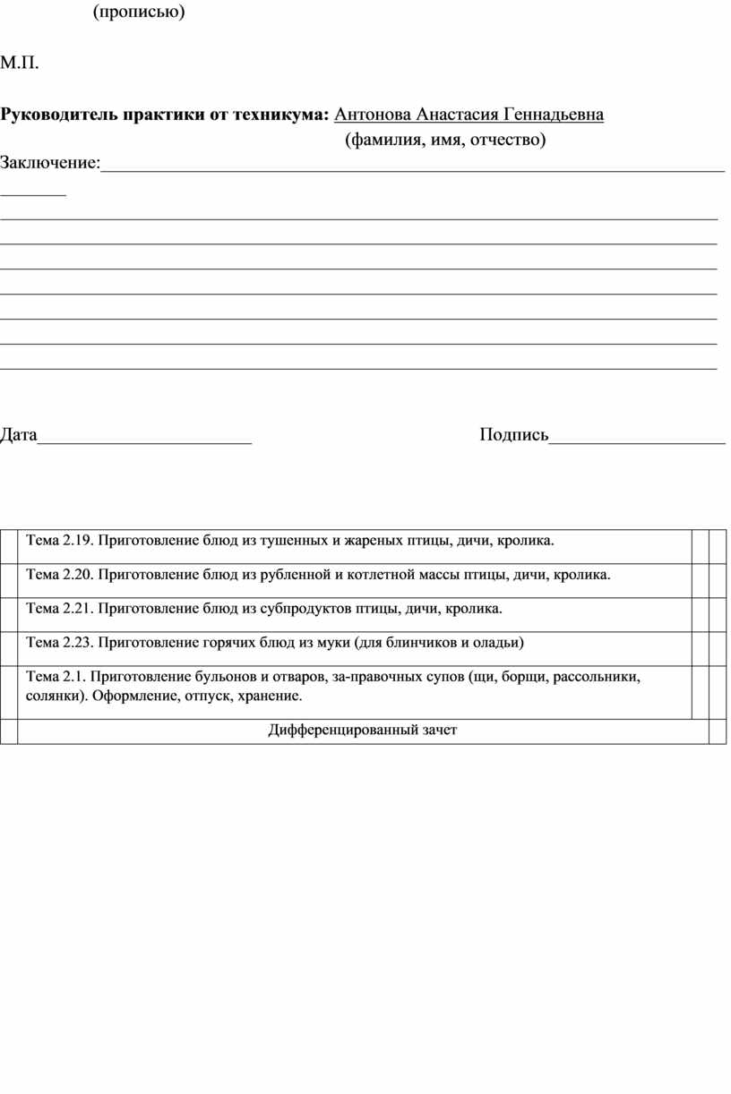 Руководитель практики от техникума: Антонова Анастасия Геннадьевна