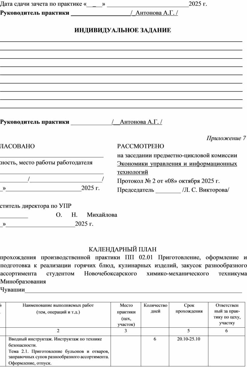 Примечание: Во время прохождения практики необходимо изучить и включить в отчет ответы на следующие вопросы согласно индивидуальному заданию: «____» _________________ 2025 г.