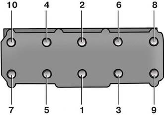 Болты и гайки крепления головки блока цилиндров затягивают в определенном порядке: начинают с середины и последовательно подтягивают болты (гайки), расположенные от средних справа и слева.