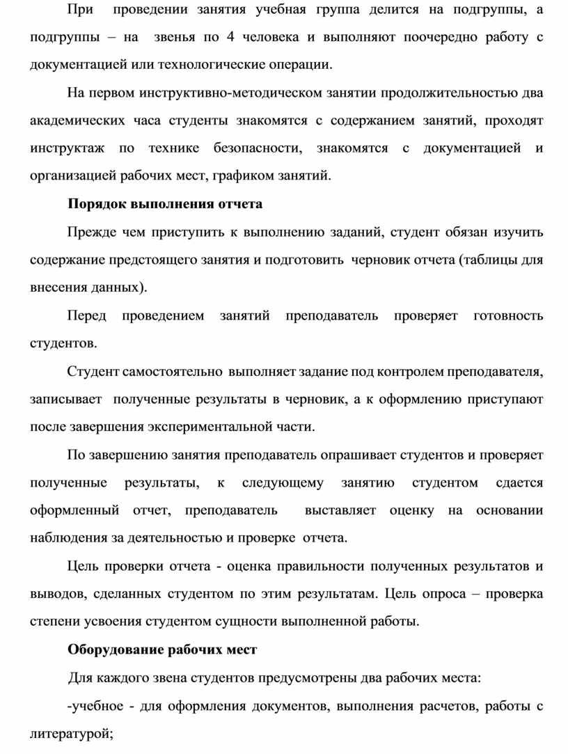 Прежде чем приступить к выполнению заданий, студент обязан изучить содержание предстоящего занятия и подготовить черновик отчета (таблицы для внесения данных).