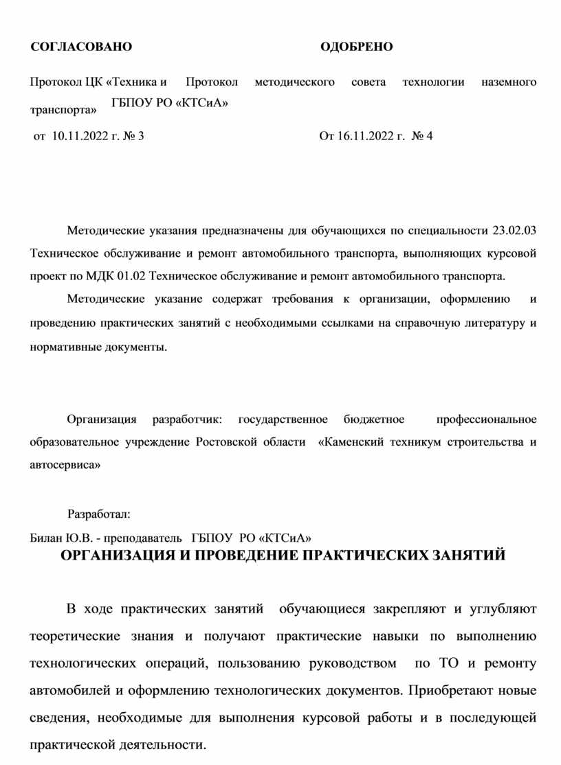 Протокол ЦК «Техника и Протокол методического совета технологии наземного транспорта» ГБПОУ РО «КТСиА»