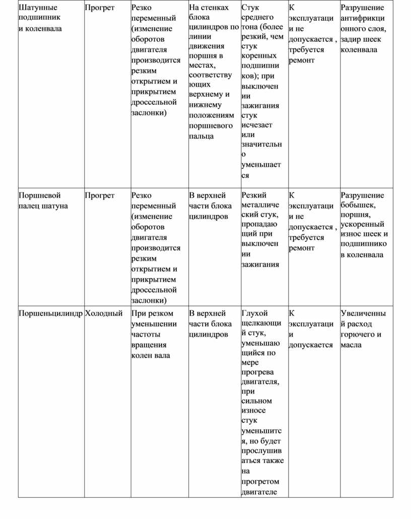 Стук среднего тона (более резкий, чем стук коренных подшипни ков); при выключен ии зажигания стук исчезает или значительн о уменьшает ся |