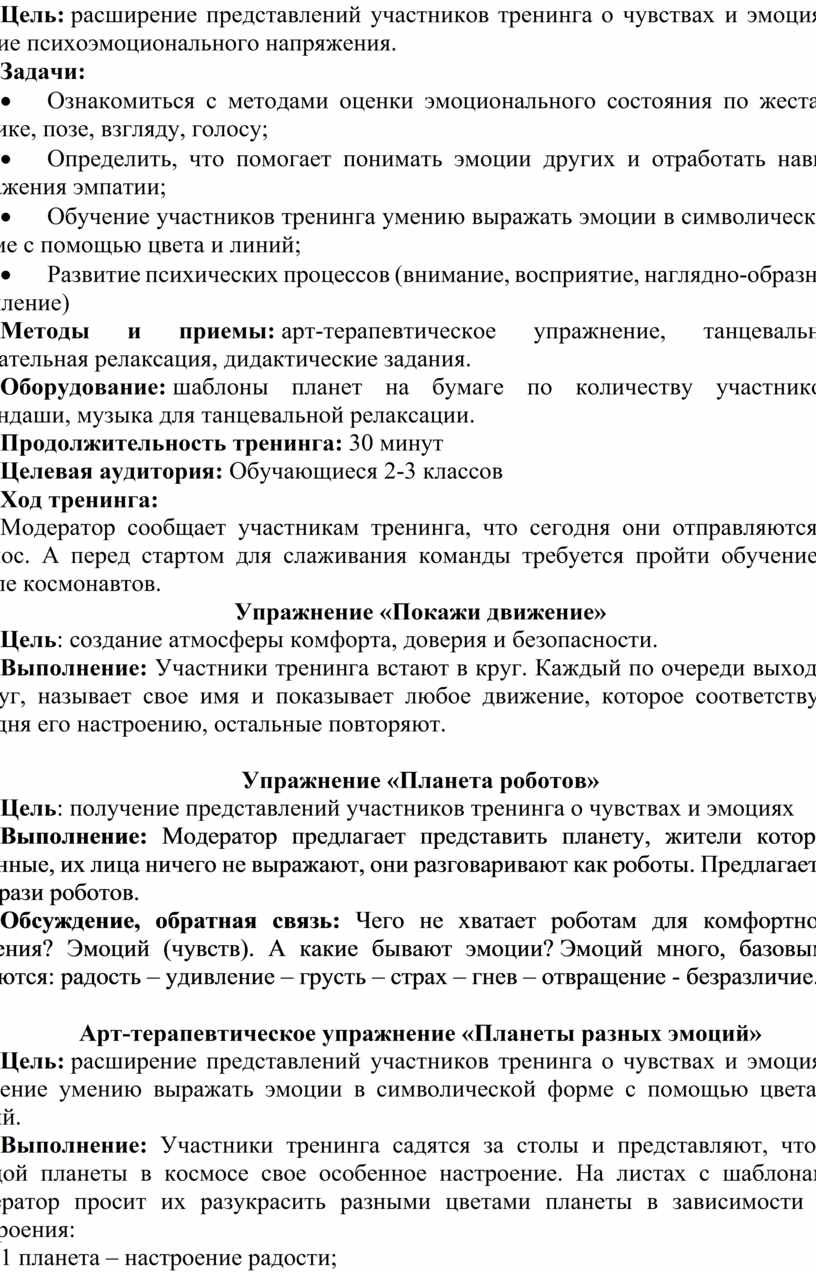 Цель: расширение представлений участников тренинга о чувствах и эмоциях, снятие психоэмоционального напряжения.