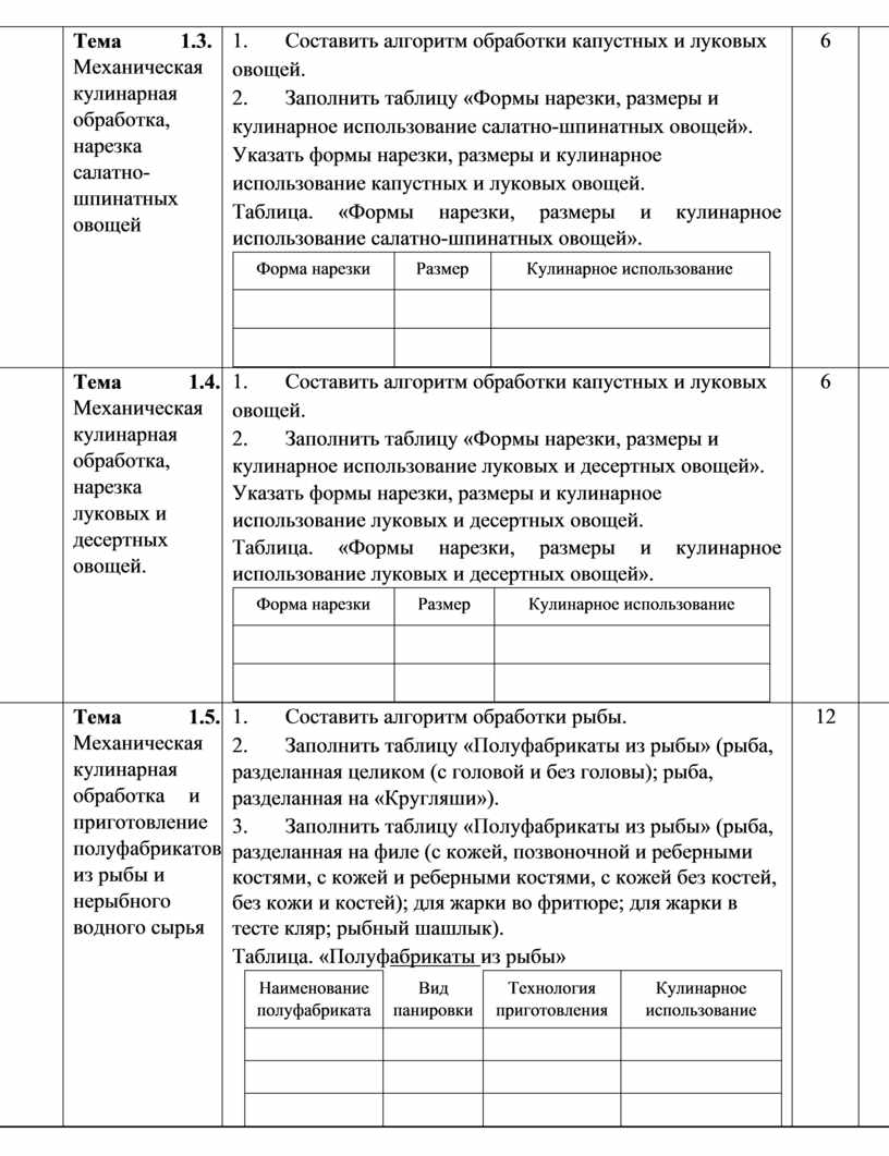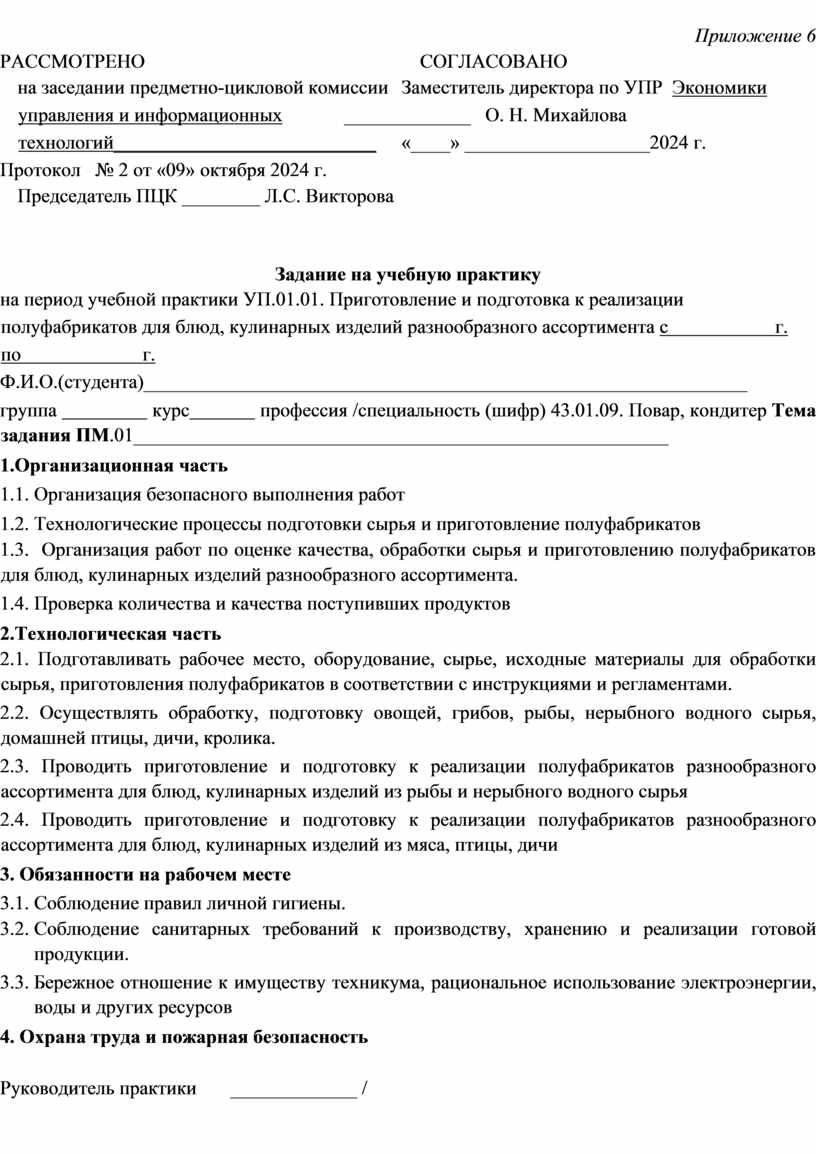 группа курс профессия /специальность (шифр) 43.01.09. Повар, кондитер Тема задания ПМ.01_______________________________________________________