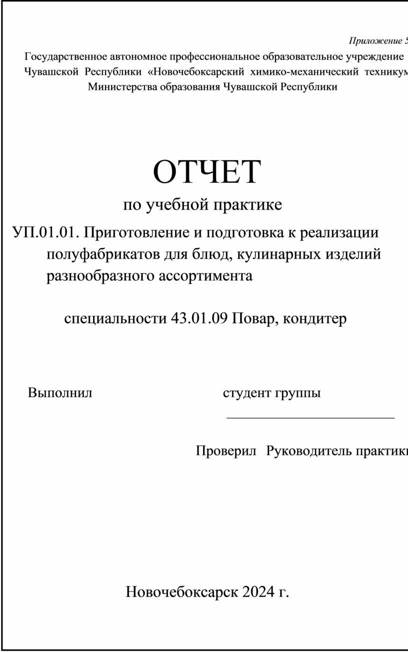 Приложение 5 Государственное автономное профессиональное образовательное учреждение Чувашской Республики «Новочебоксарский химико-механический техникум» Министерства образования Чувашской Республики