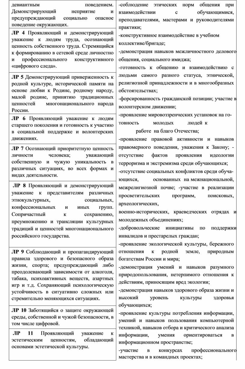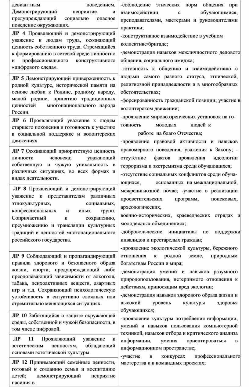 ЛР 4 Проявляющий и демонстрирующий уважение к людям труда, осознающий ценность собственного труда. Стремящийся к формированию в сетевой среде личностно и профессионального конструктивного «цифрового следа». |