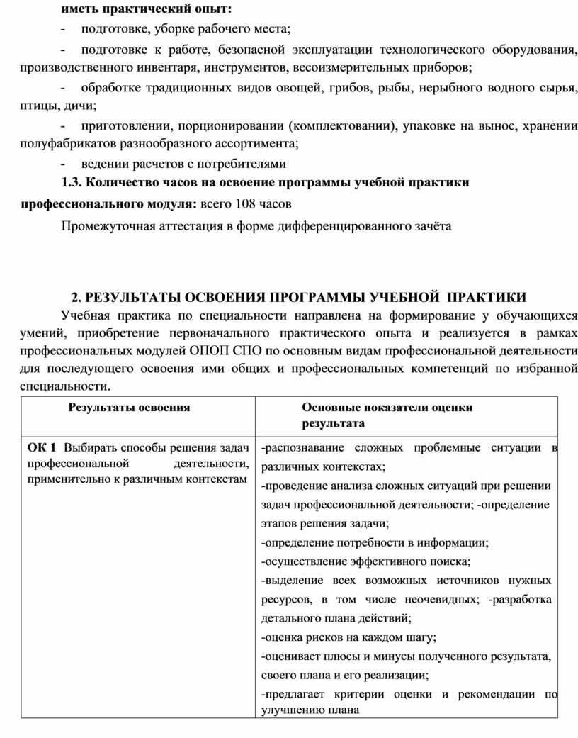 1.3. Количество часов на освоение программы учебной практики профессионального модуля: всего 108 часов