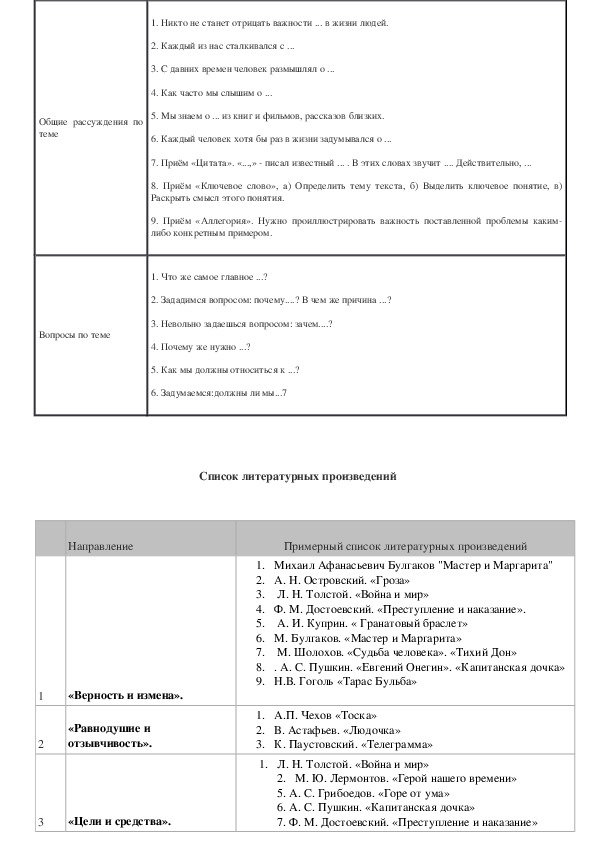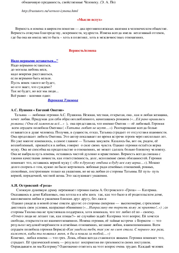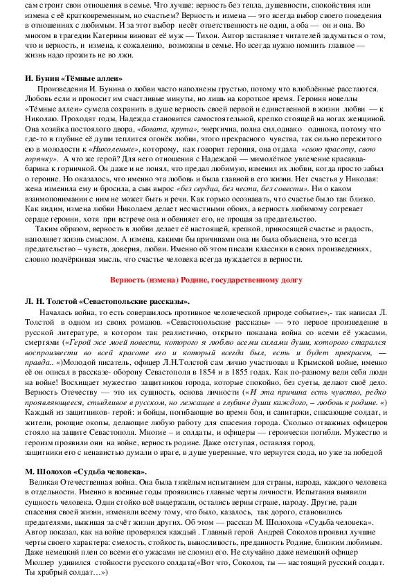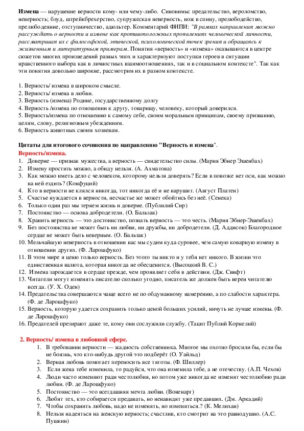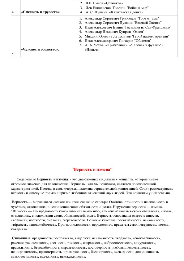 1. «Верность и измена». В рамках направления можно рассуждать о верности и измене как