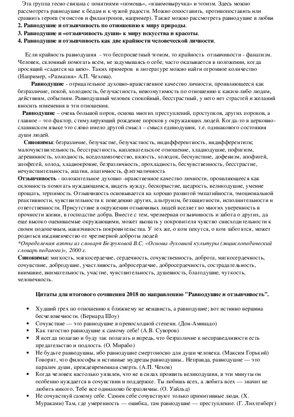 2. «Равнодушие и отзывчивость». Темы данного направления нацеливают учащихся на осмысление