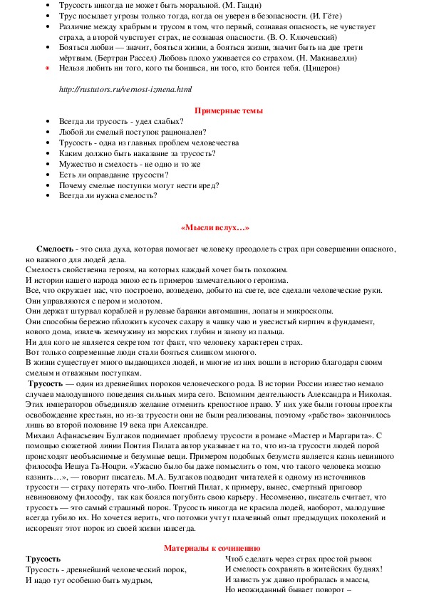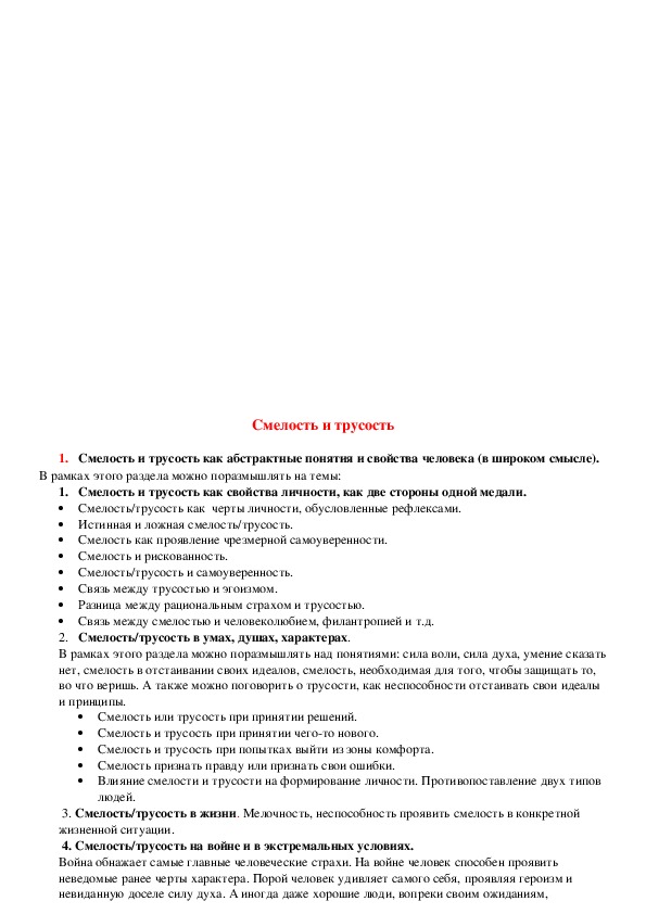4. «Смелость и трусость». В основе данного направления лежит сопоставление противоположных