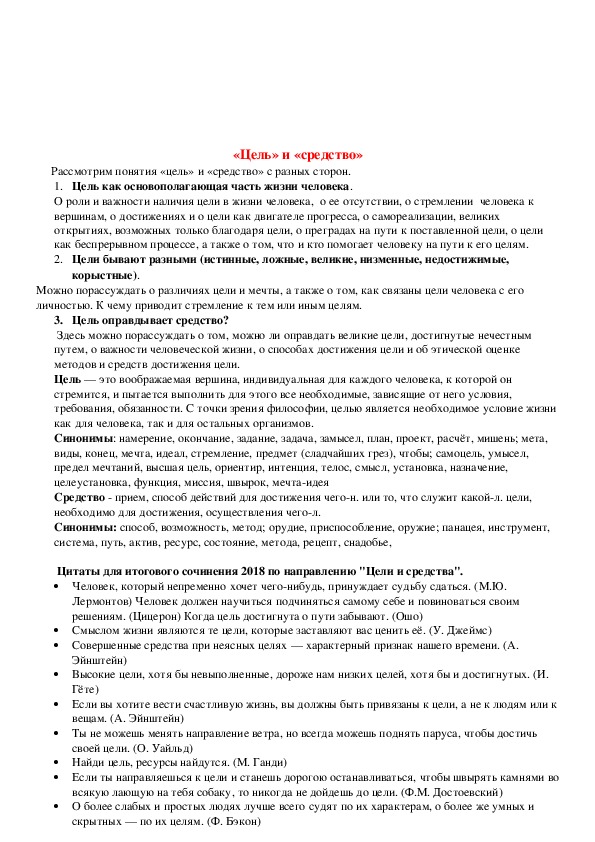 3. «Цели и средства». Понятия данного направления взаимосвязаны и позволяют задуматься о