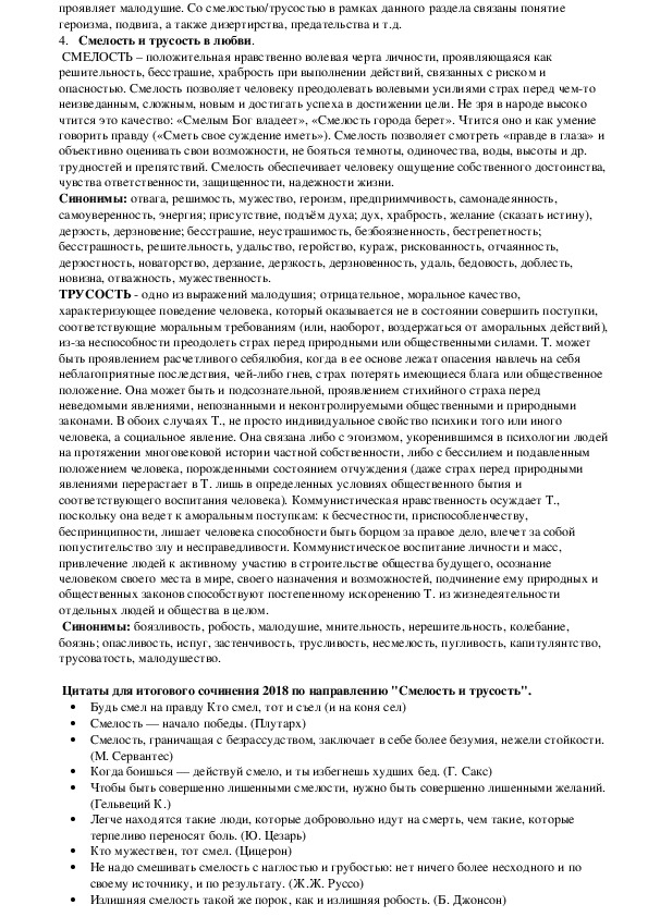психологической точек зрения и обращаясь к жизненным и литературным примерам. Понятия