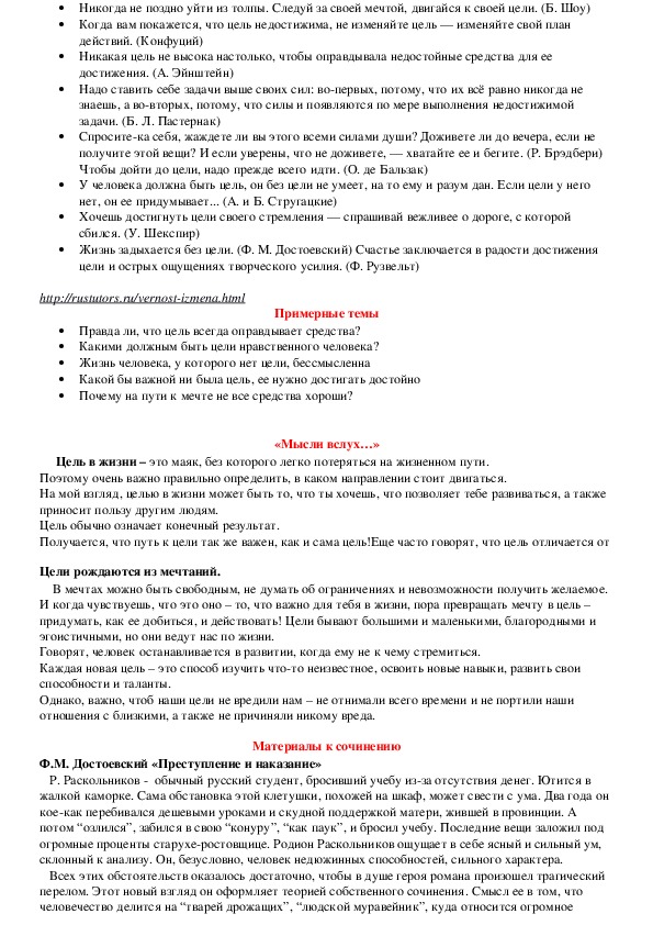 жизненных устремлениях человека, важности осмысленного целеполагания, умении правильно