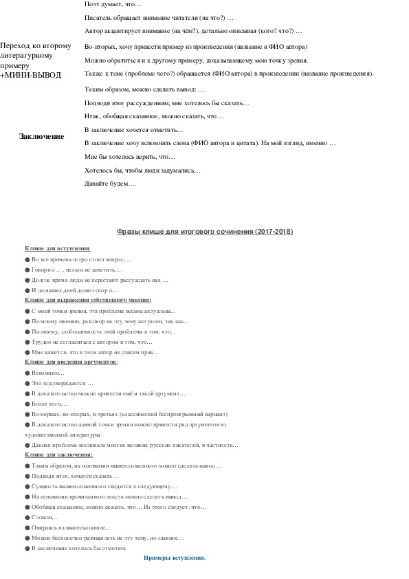 →5 открытых направлений тем итогового сочинения на 2017–2018 учебный год: