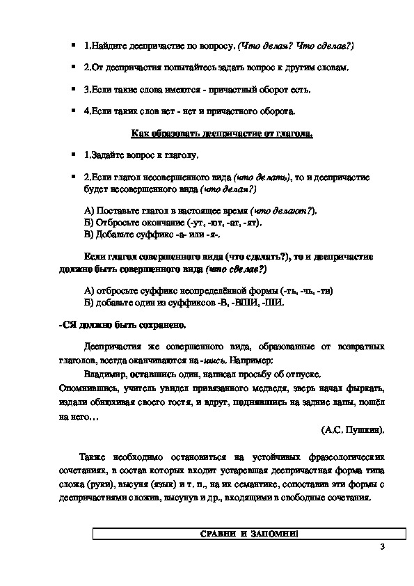 Умение применять суффиксы для образования деепричастий от глаголов совершенного и несовершенного вида.