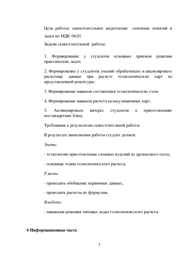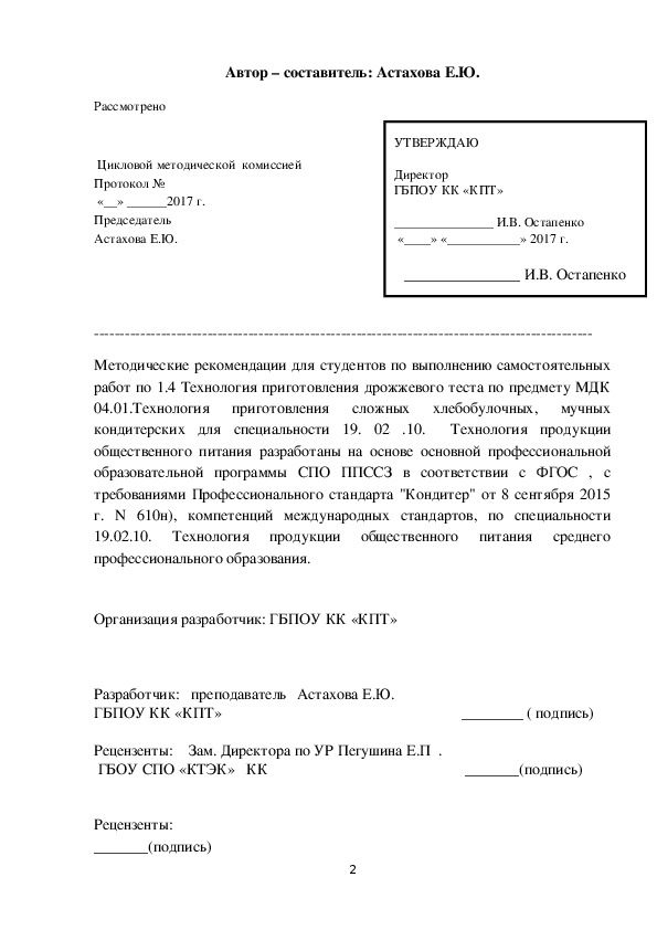 Методические рекомендации для студентов по выполнению самостоятельных работ по 1.4 Технология приготовления дрожжевого теста по предмету МДК 04.01.Технология приготовления сложных хлебобулочных, мучных кондитерских для специальности 19. 02 .10. Технология продукции общественного питания разработаны на основе основной профессиональной образовательной программы СПО ППССЗ в соответствии с ФГОС , с требованиями Профессионального стандарта "Кондитер" от 8 сентября 2015 г. N 610н), компетенций международных стандартов, по специальности 19.02.10. Технология продукции общественного питания среднего профессионального образования.Методические рекомендации по выполнению самостоятельной работы по предмету МДК 04.01.Технология приготовления сложных хлебобулочных, мучных кондитерских изделий для специальности 19. 02 .10. Технология продукции общественного питания созданы Вам в помощь при выполнении самостоятельных работ или при подготовке заданий для самостоятельного изучения.