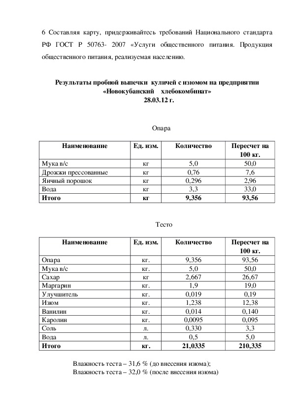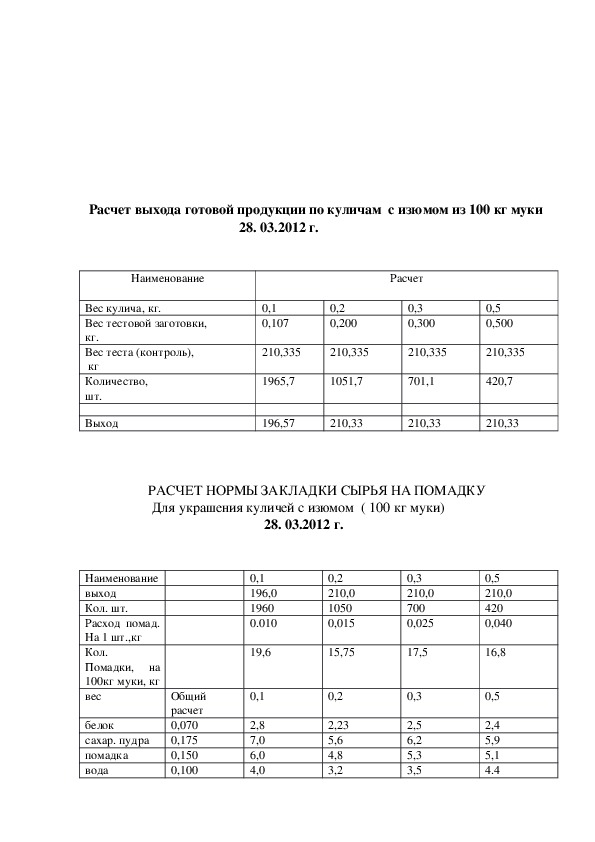 6 Вид работы: Рассчитать калькуляцию куличей по рецепту в пункте 4 на