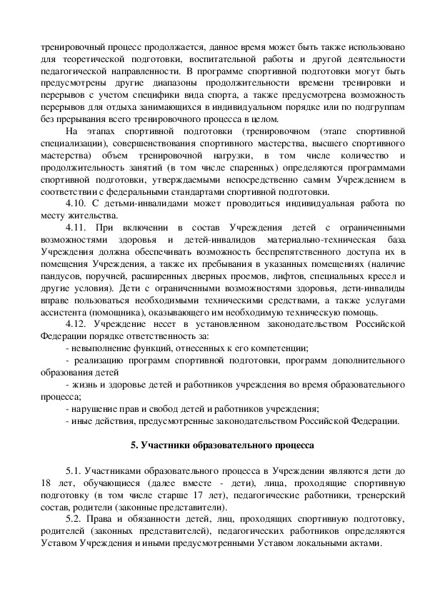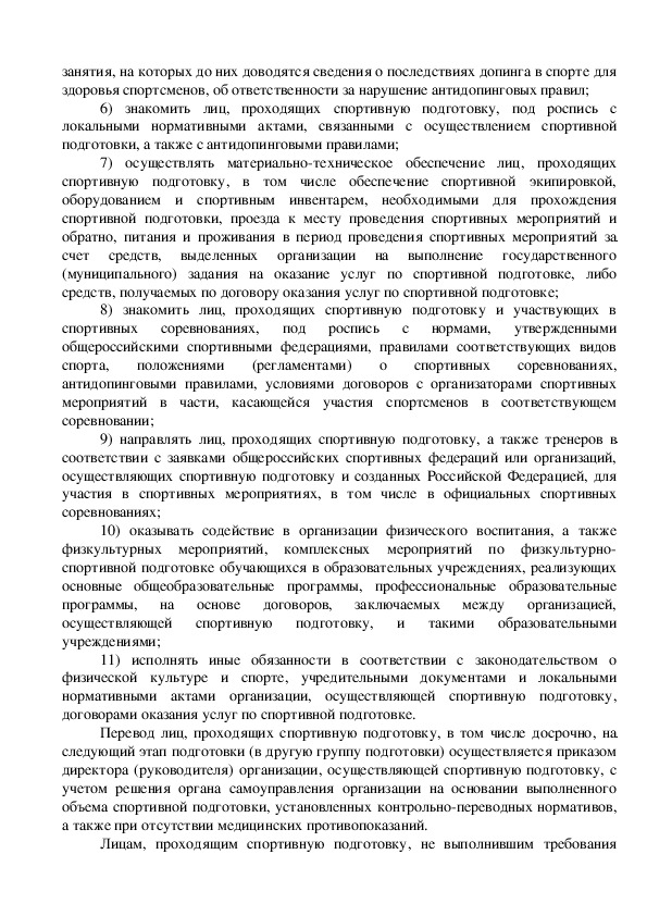 программ спортивной подготовки в порядке, предусмотренном законодательством