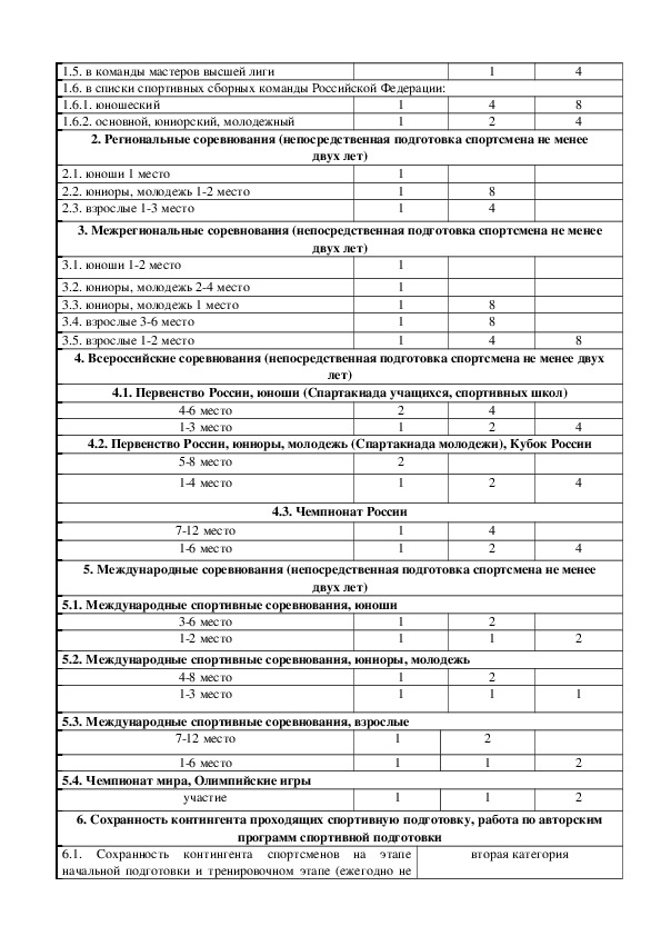 клубов второй, первой и (или) высшей лиги, суперлиги) за последние четыре года не