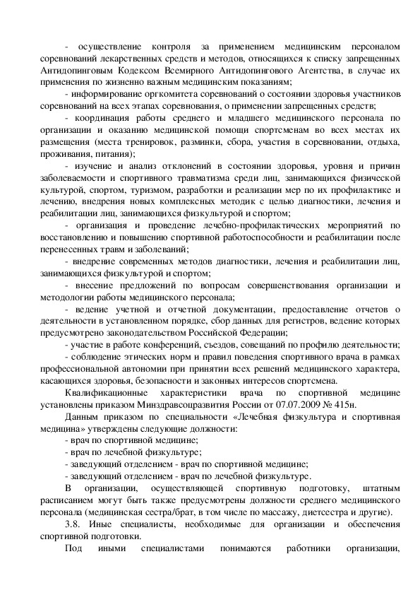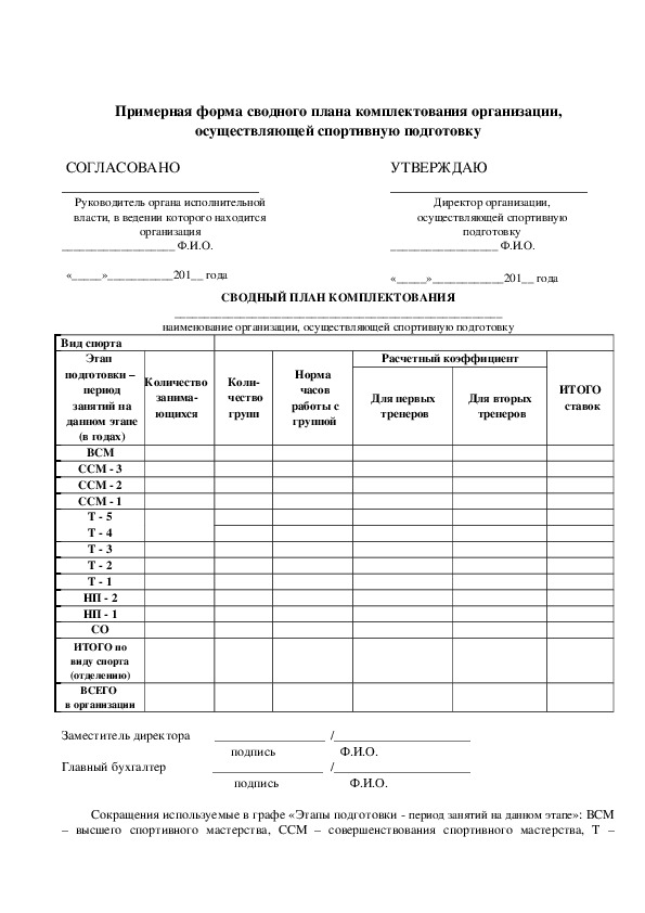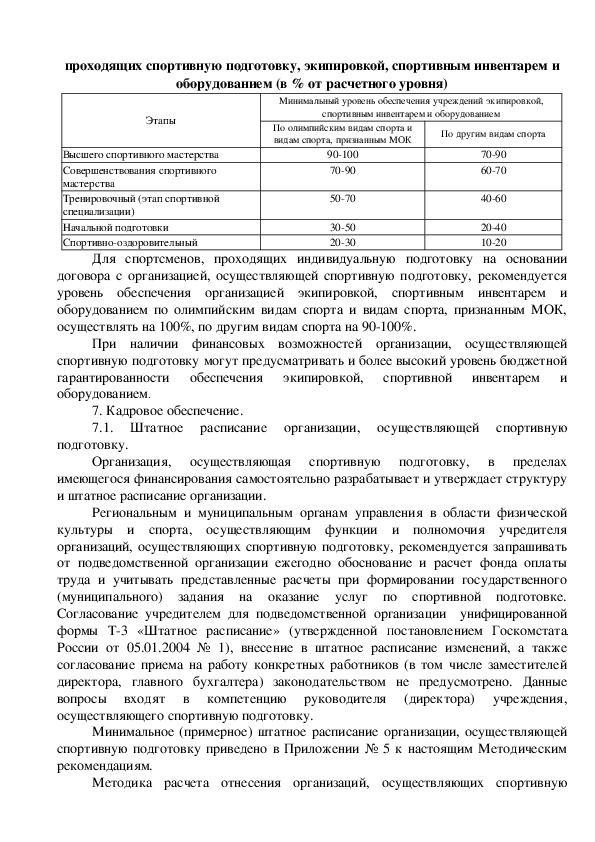 культуры и спорта, в организации спортивной подготовки на основе федеральных