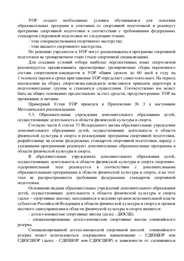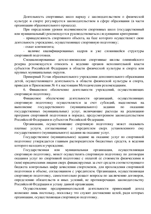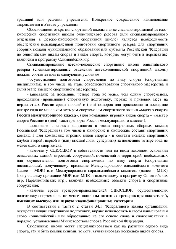 спорта, так и быть комплексными, то есть, культивировать несколько видов спорта.Деятельность спортивных школ наряду с законодательством о физической
