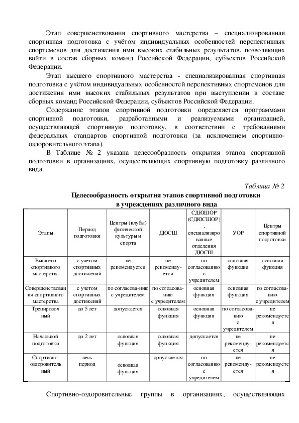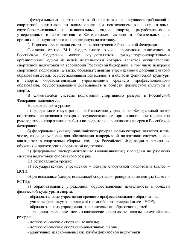 2. Порядок организации спортивной подготовки в Российской Федерации.