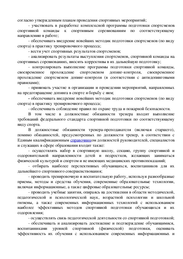 подготовку спортсменов, не менее половины штатных тренеровпреподавателей,